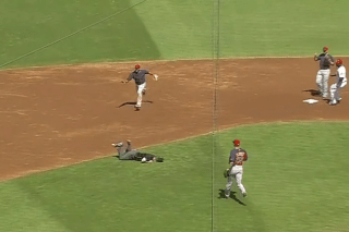Now, what none of the reports also failed to mention is the ruling on this. While it was obvious that play stopped, the umpire is treated the same way as a runner would in this situation, so it is a case of interference, but not necessarily always (this is today’s lesson). This is not a dodge-ball type rule that says a runner is out if hit by a batted ball; the real infraction is interference because the person who was hit robbed the fielder of an opportunity to field the ball. What most serious baseball fans don’t realize is that if the fielder already had an opportunity to make a play, the play most likely should be allowed to continue after hitting the runner/umpire and the ball would still be considered “live.” Three examples of this are: