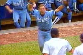 You can’t mention “the pine tar game” without first thinking about the iconic image of KC’s hall-of-fame third baseman George Brett’s full-blown nutty, charging out of the visitor’s dugout at Yankee stadium like the Incredible Hulk, hellbent on tearing the umpires limb from limb once he learned he had been called out for illegal use of pine-tar, thus negating his go-ahead, 9th inning, two-run homer and ending the game on the out call. What people often forget is that the Royals got the last laugh after their appeal was upheld by AL Commissioner Lee MacPhail – the call was overturned, the home run put back on the board and the suspended game won by the Royals a few weeks later in front of about 1200 fans in New York. The reason the ruling was reversed is because the rule itself had nothing to do with the hitter gaining an advantage. The only reason for not allowing pine tar past the first 18 inches of the bat is because the pine tar mucks up the baseballs. The logic was that if there was no advantage, then there should be no penalty…except to get rid of the bat.